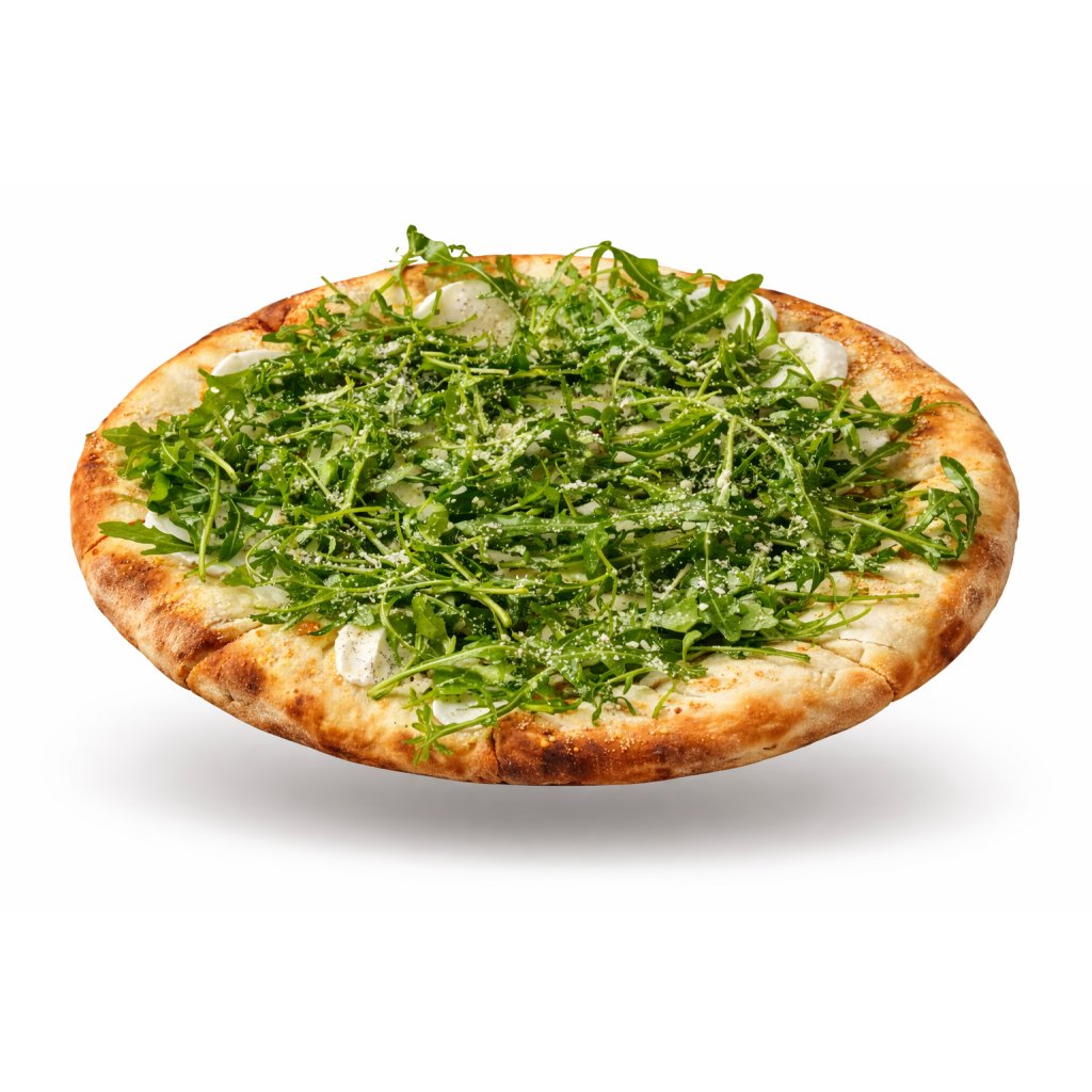 (sýrové okraje, sugo, sýr, parmská šunka, nakládaná mozzarella, rukola, parmazán, olivový olej)
